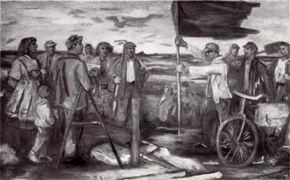 «1954 wurde in der ländlich geprägten Region Mecklenburg das frühere Gutsdorf Mestlin zu einem sozialistischen Musterdorf ausgebaut. Elektrische Leitungen wurden gelegt, 152 Wohnungen errichtet, eine Schule, ein Landambulatorium und ein repräsentatives Kulturhaus gebaut. Das zweigeschossige Gebäude erhielt eigene Kunstwerke, darunter das von Heinz Dubois 1956 gefertigte Gemälde Bodenreform. Dubois fertigte das grossformatige Auftragswerk direkt für das neue Kulturhaus an und thematisierte dabei den politischen Vorgang. Das Bild vom Neubauern, der die rote Arbeiterfahne in den ihm zugteilten Boden steckt, sollte das Bündnis der Arbeiterklasse mit den Bauern versinnbildlichen.» Simone Tippach-Schneider, Seite 135